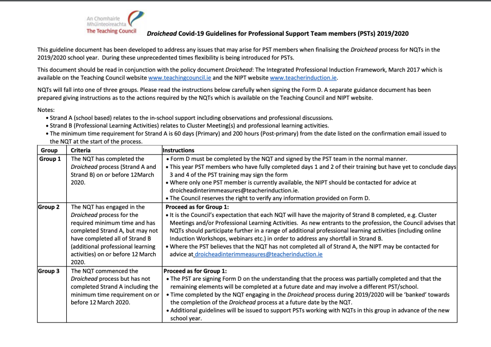 The Cork Education Support Centre, in conjunction with the Department of Education and Skills, the Government and the public health authorities, will keep the situation under ongoing review. Any changes will be communicated on our homepage.